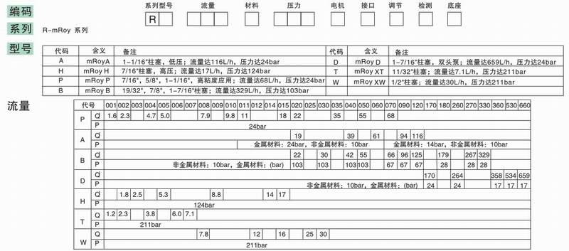 mRoy系列馬達驅(qū)動液壓隔膜計量泵選型編碼