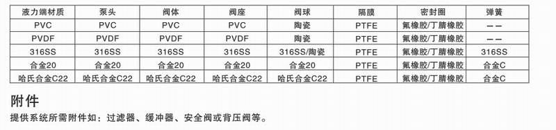 mRoy系列馬達驅(qū)動液壓隔膜計量泵泵頭主要部件材料