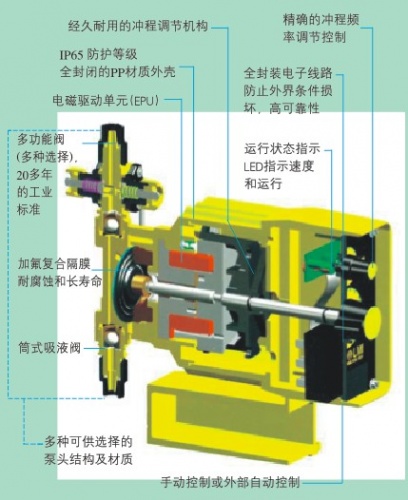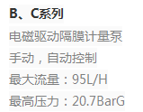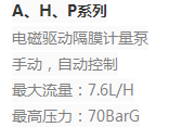 LMI電磁計量泵共有P,A(AA),B,C,E,H,J5等7個系列。用戶可根據(jù)流量、壓力、防爆等級、電源、自控等要求選用相應系列計量泵。